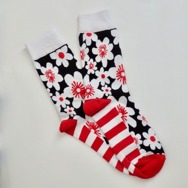 ポップな柄で履くと元気が出る可愛い靴下。 カラフルなお洋服にも馴染み、シンプルなお洋服にもアクセントになる個性的な一足。 《サイズ》男女兼用サイズ:〜約28cm 《丈》約19cm ◇海外製の為、1〜2cm程の誤差や個体差、多少のほつれなどがある場合がございます。使用には問題ございませんのでご了承ください。 ・商品の色は、お客様のモニターによって実際の色と若干異なる場合がございます。 ・商品到着時に欠陥がある場合を除き、基本的には返品には応じません。