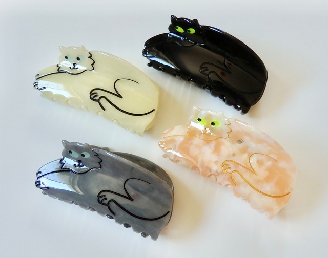 全身のねこのデザインが可愛いアクリル製のヘアクリップ。 髪の毛以外にバッグなどに挟んでも◎ 《サイズ》約 縦40×幅93mm ◇海外製の為、多少の歪みや傷がある場合がございます。ご了承ください。 ・商品の色は、お客様のモニターによって実際の色と若干異なる場合がございます。 ・金属アレルギーの方や、メッキ加工が肌に合わない方はご注文はお控えください。 ・商品到着時に欠陥がある場合を除き、基本的には返品には応じません。