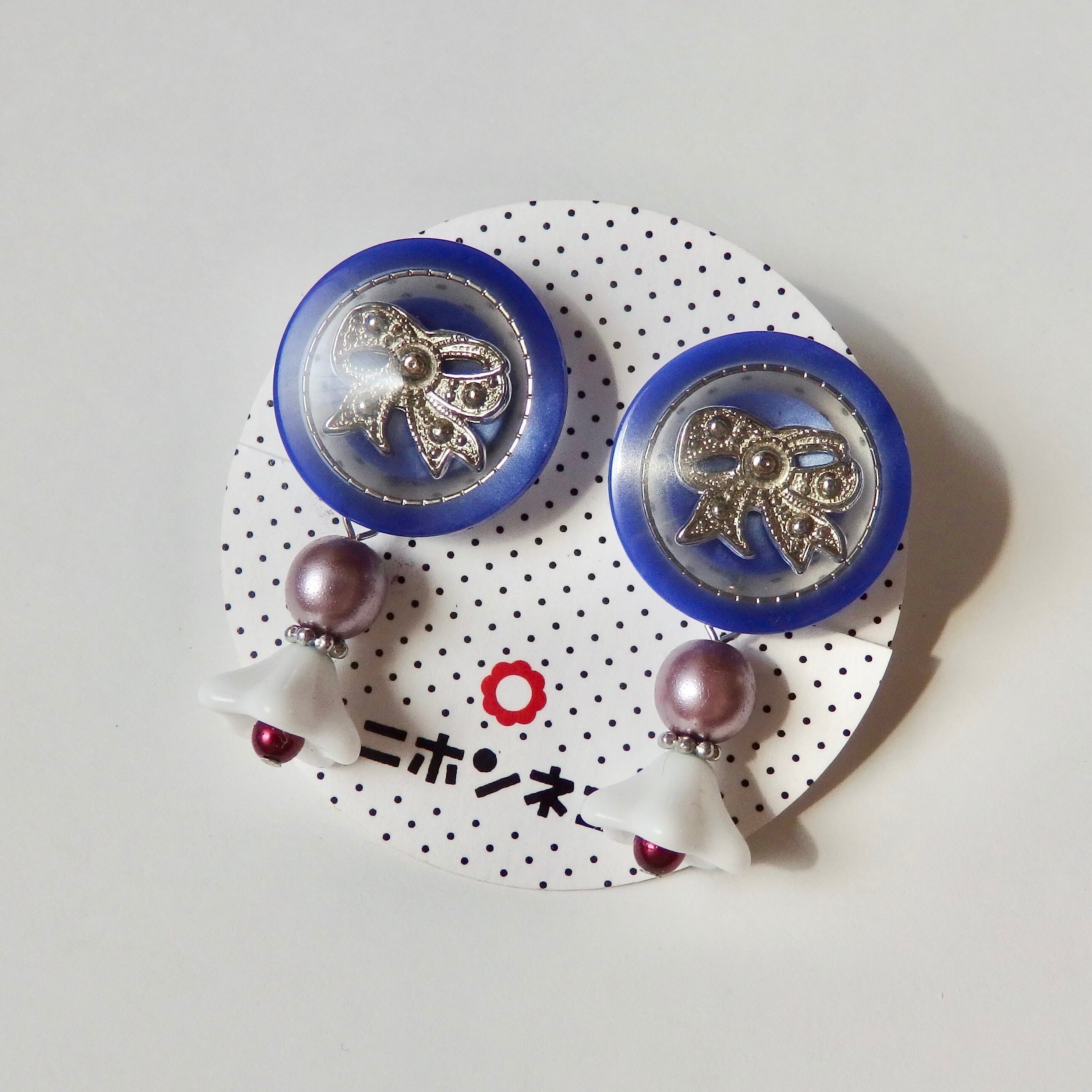 昭和時代のクラシカルな高級ボタンを使用した、ニホンネコのオリジナルイヤリングです。