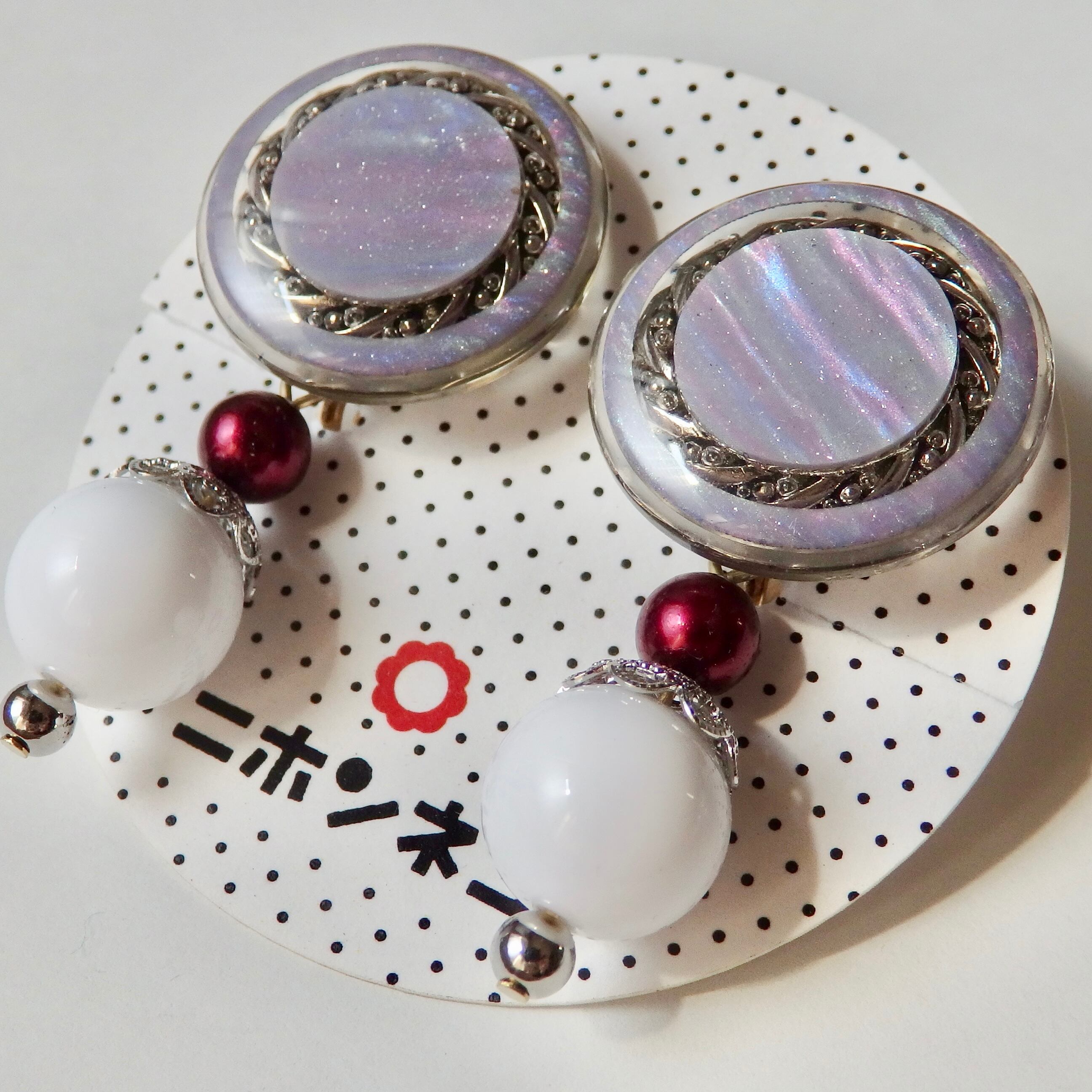 昭和時代のクラシカルな高級ボタンを使用した、ニホンネコのオリジナルイヤリングです。