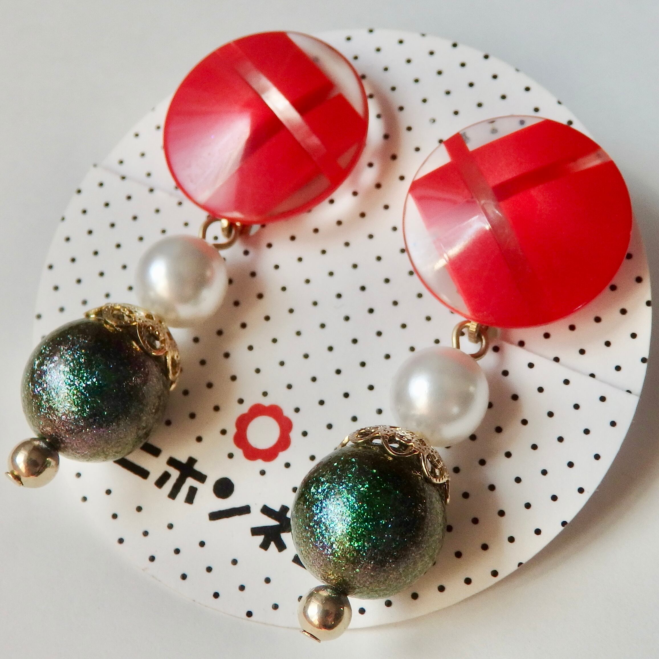 昭和時代のクラシカルな高級ボタンを使用した、ニホンネコのオリジナルイヤリングです。