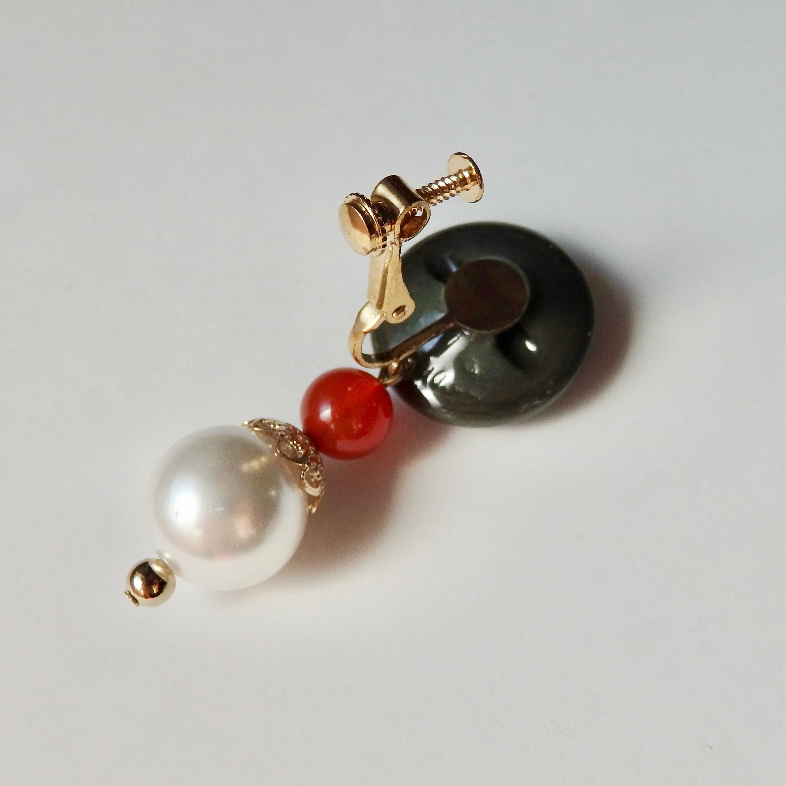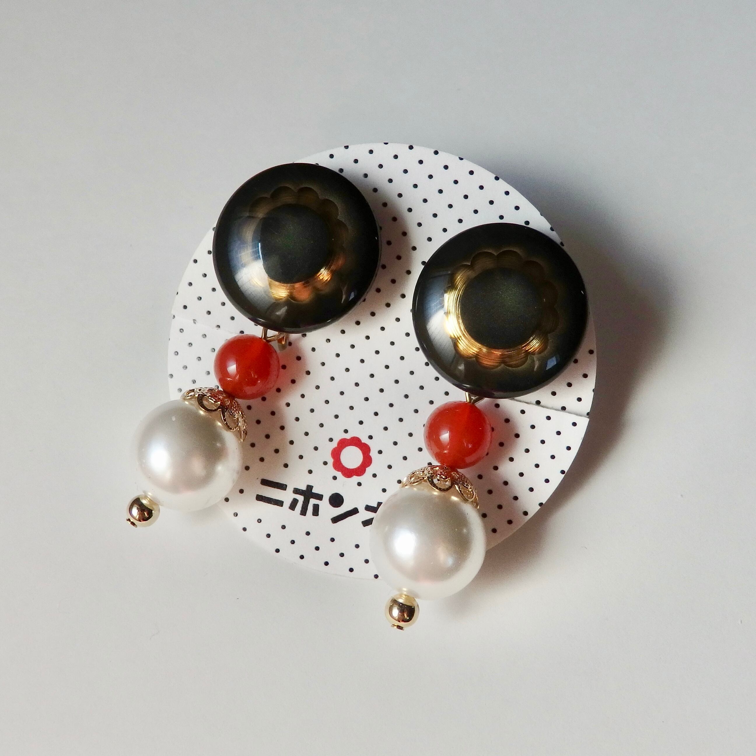 昭和時代のクラシカルな高級ボタンを使用した、ニホンネコのオリジナルイヤリングです。