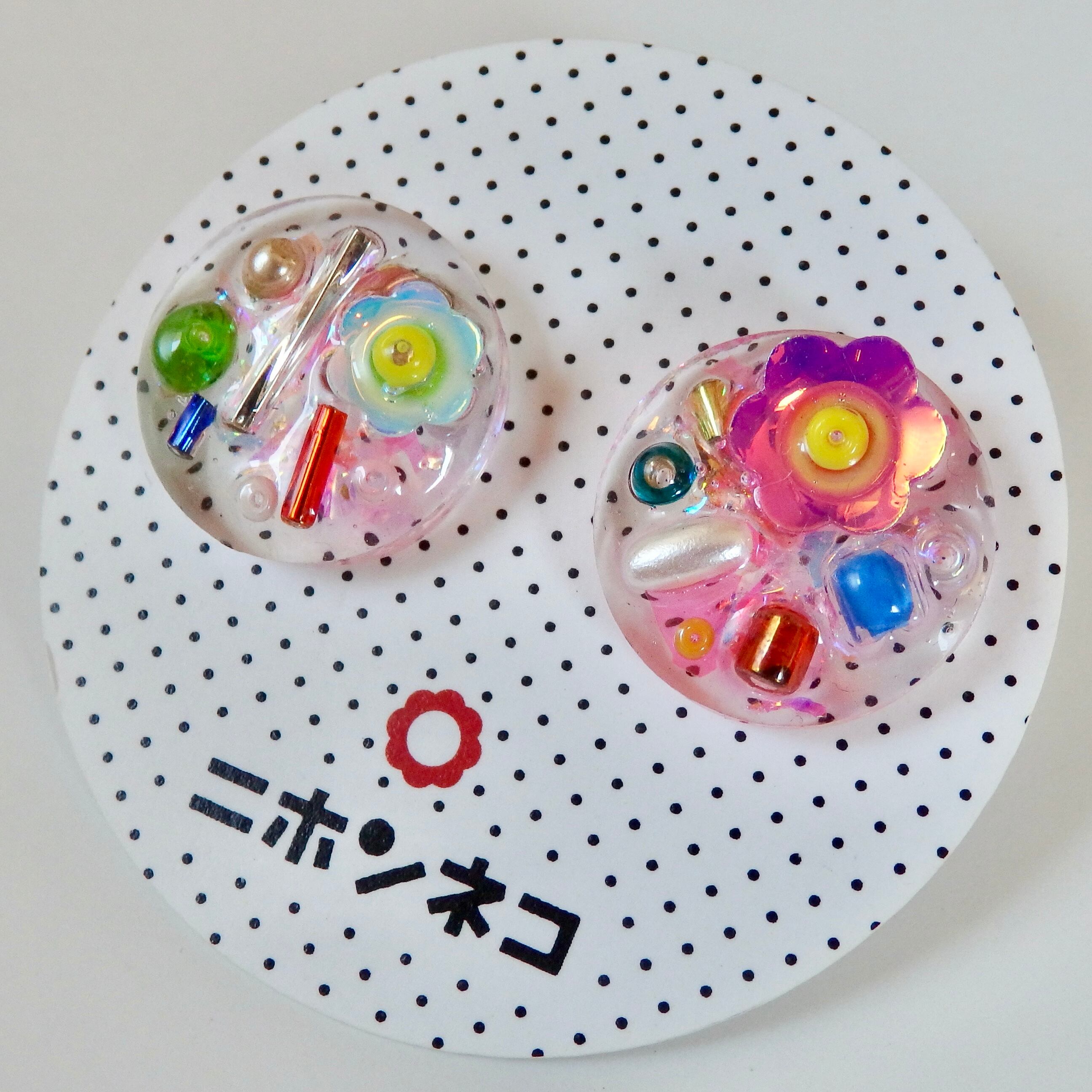 キラキラカラフルな飴をイメージして作ったイヤリング。