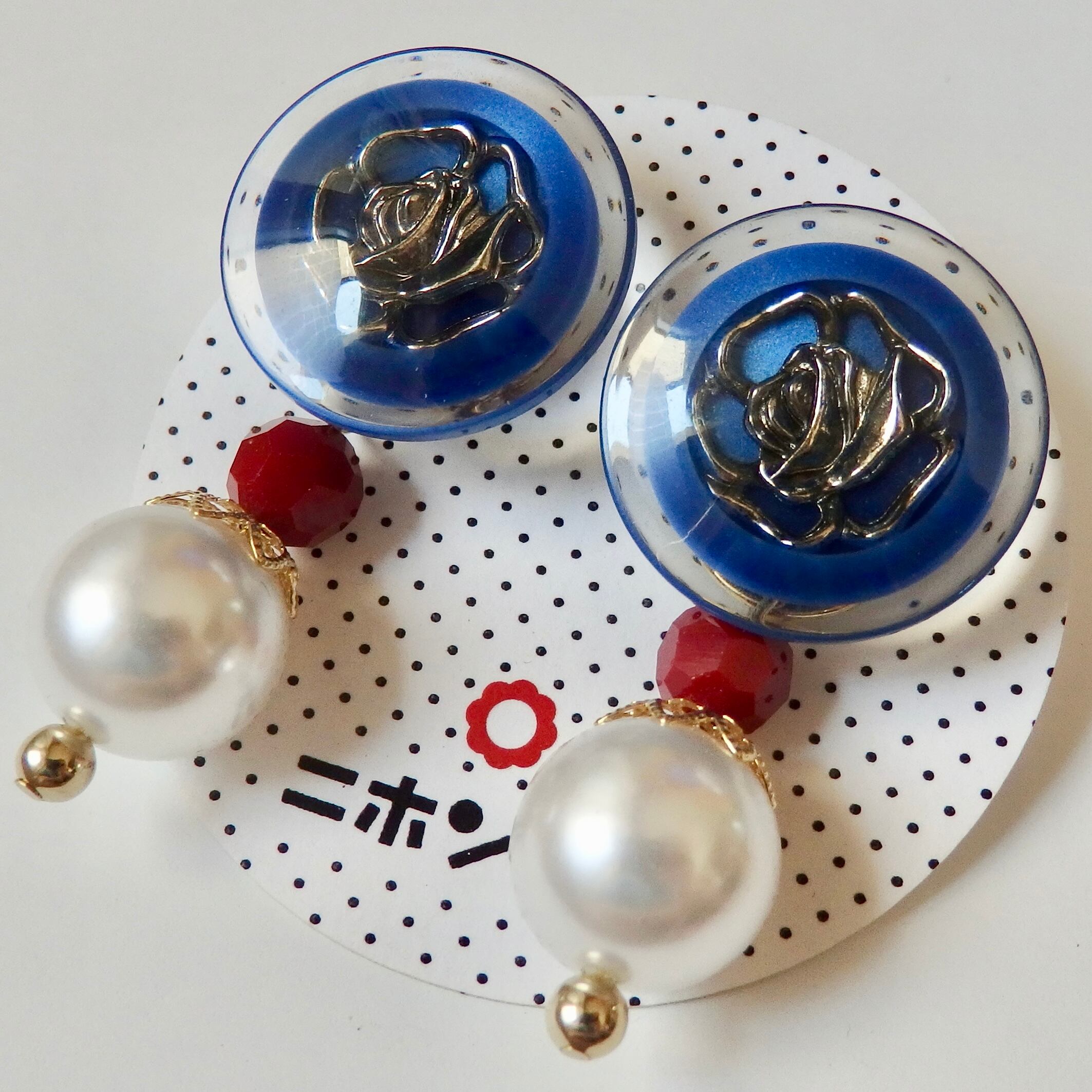 昭和時代のクラシカルな高級ボタンを使用した、ニホンネコのオリジナルピアスです。