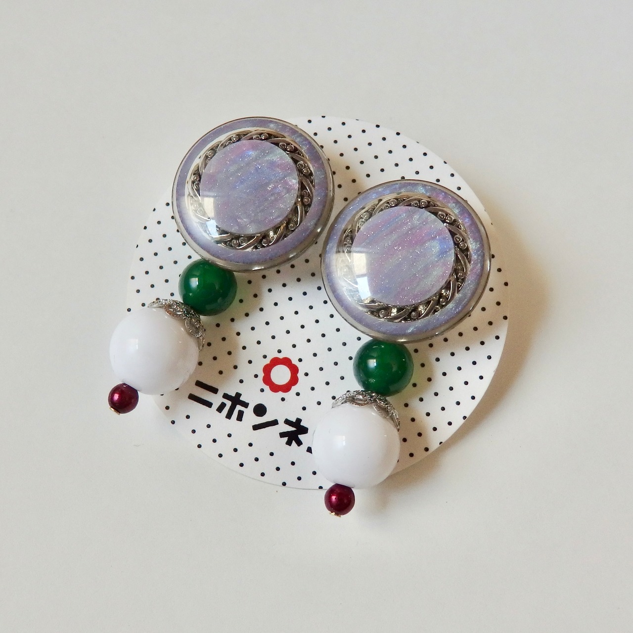 昭和時代のクラシカルな高級ボタンを使用した、ニホンネコのオリジナルピアスです。