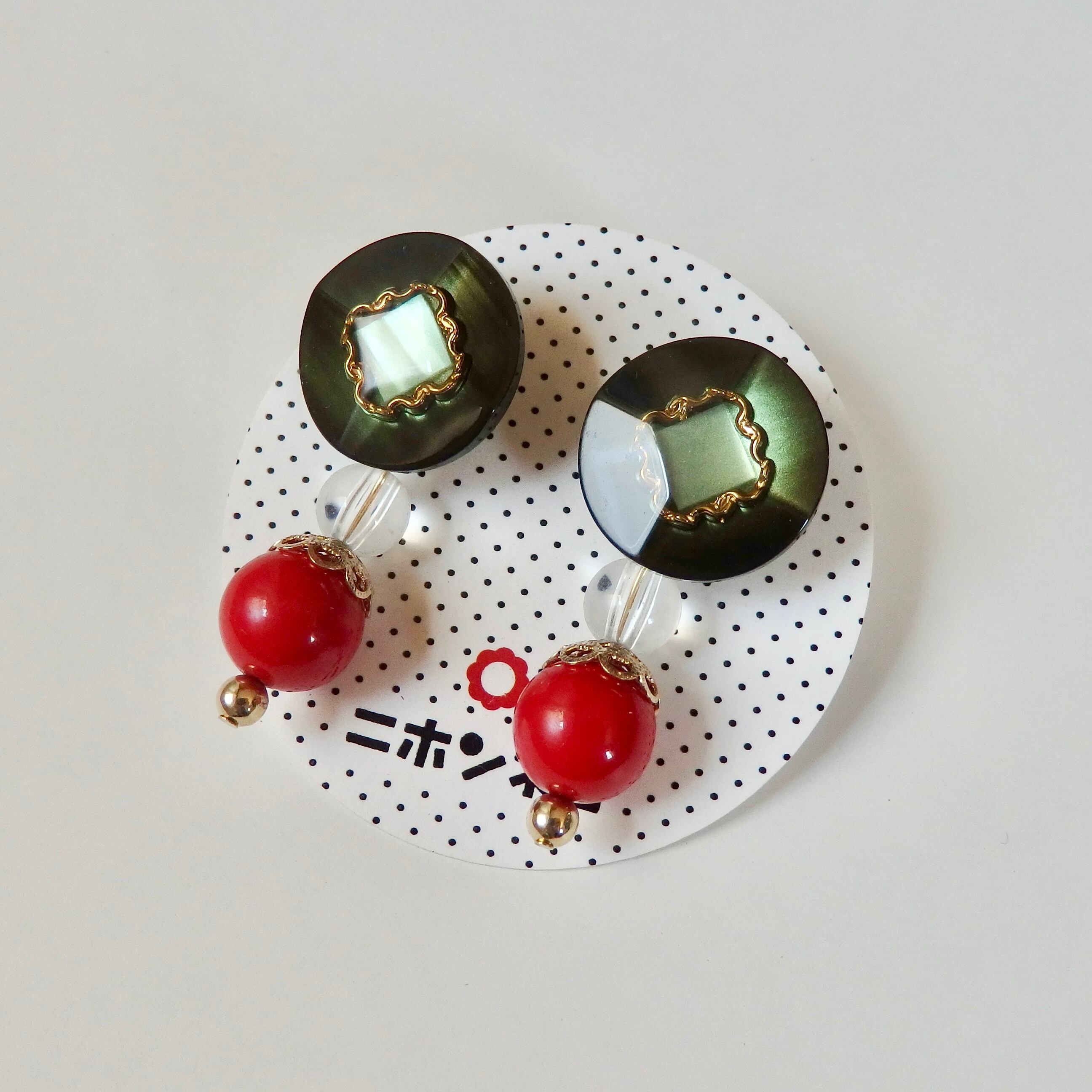 昭和時代のクラシカルな高級ボタンを使用した、ニホンネコのオリジナルピアスです。