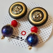 昭和時代のクラシカルな高級ボタンを使用した、ニホンネコのオリジナルピアスです。