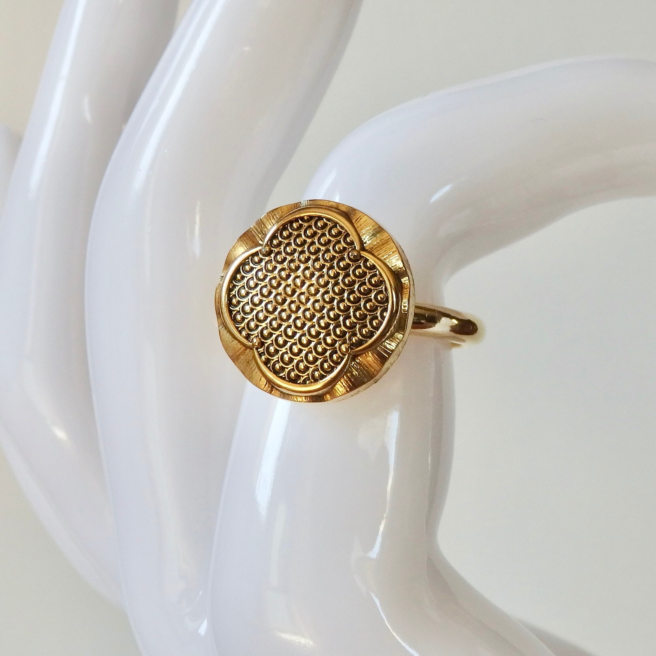 昭和時代のクラシカルな高級ボタンを使用した、ニホンネコのオリジナルの指輪です。