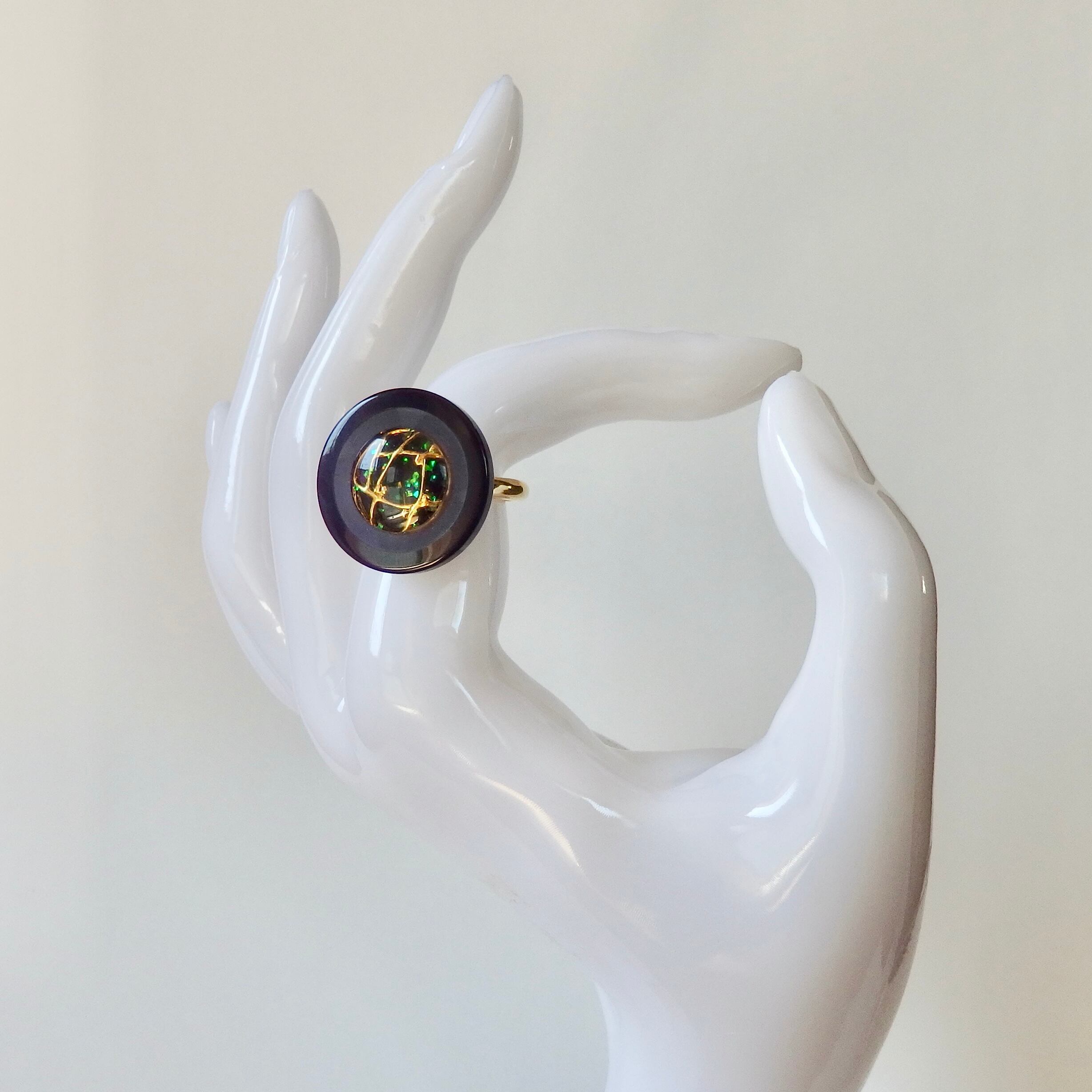昭和時代のクラシカルな高級ボタンを使用した、ニホンネコのオリジナルの指輪です。
