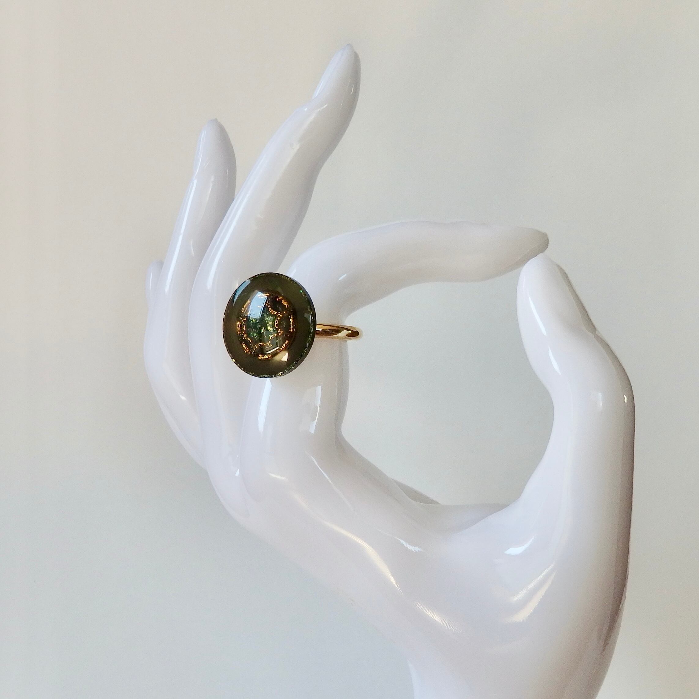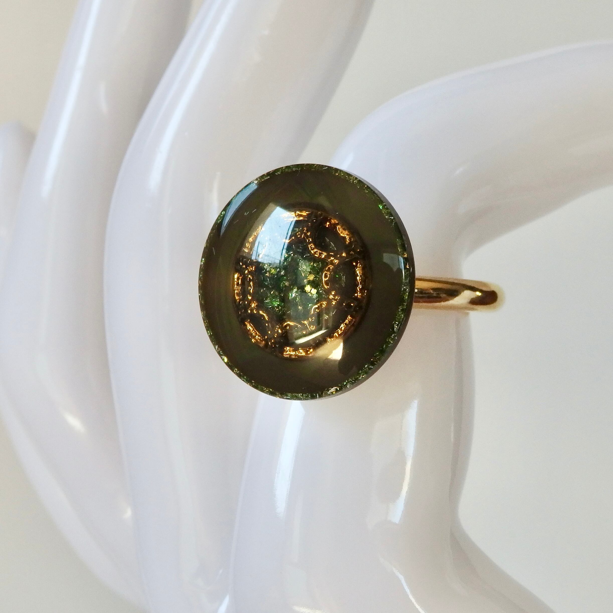 昭和時代のクラシカルな高級ボタンを使用した、ニホンネコのオリジナルの指輪です。