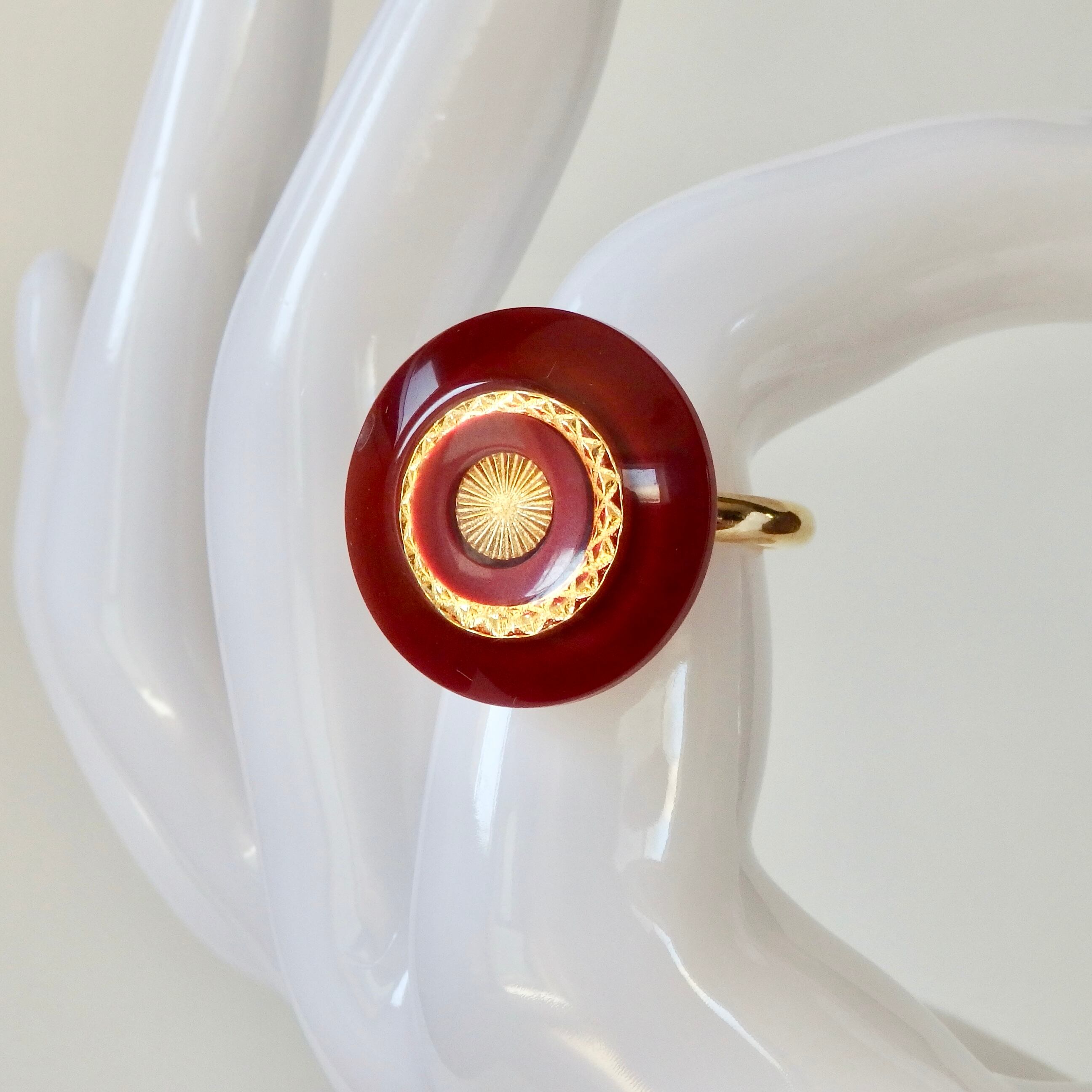 昭和時代のクラシカルな高級ボタンを使用した、ニホンネコのオリジナルの指輪です。
