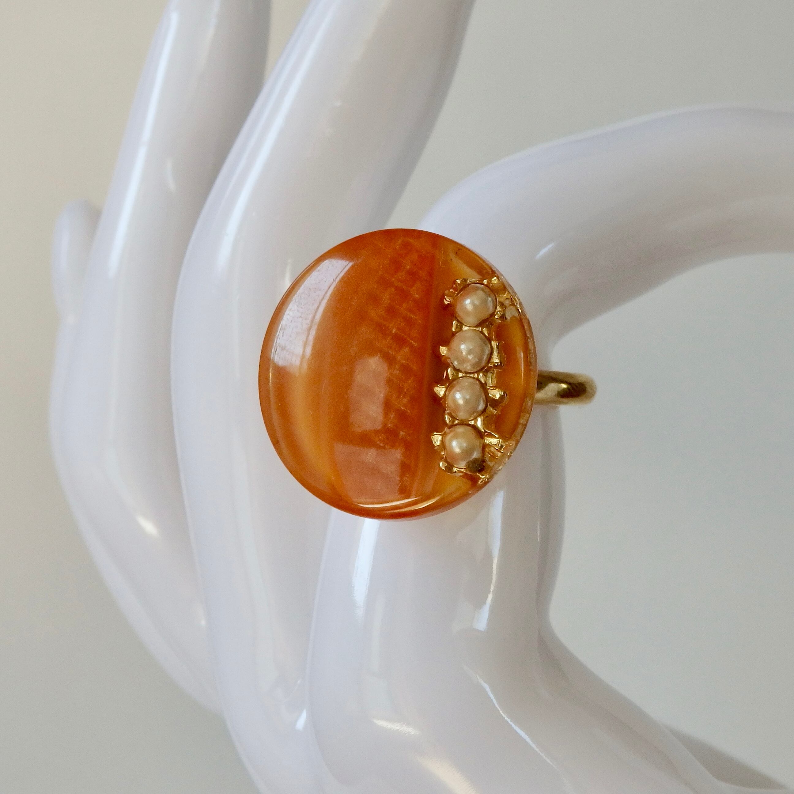 昭和時代のクラシカルな高級ボタンを使用した、ニホンネコのオリジナルの指輪です。