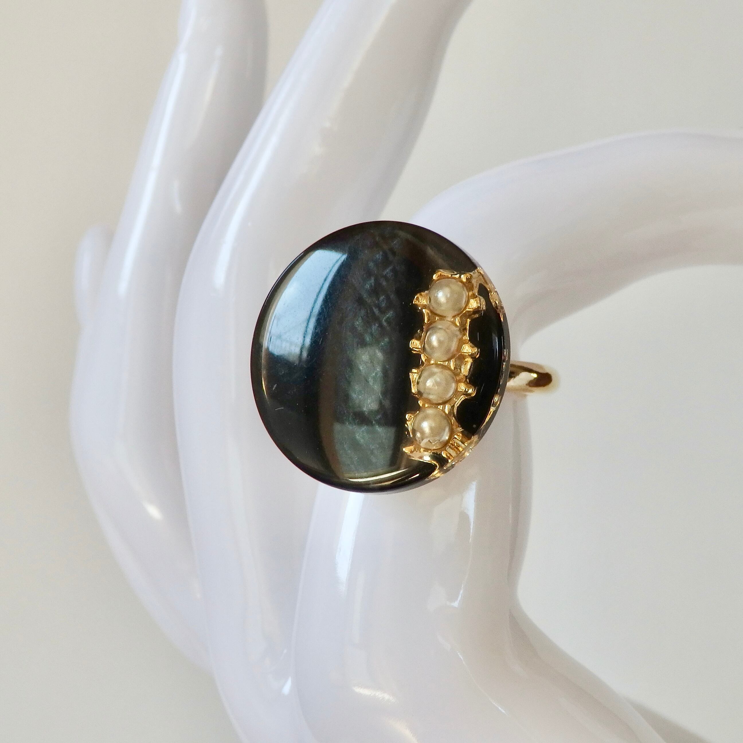 昭和時代のクラシカルな高級ボタンを使用した、ニホンネコのオリジナルの指輪です。