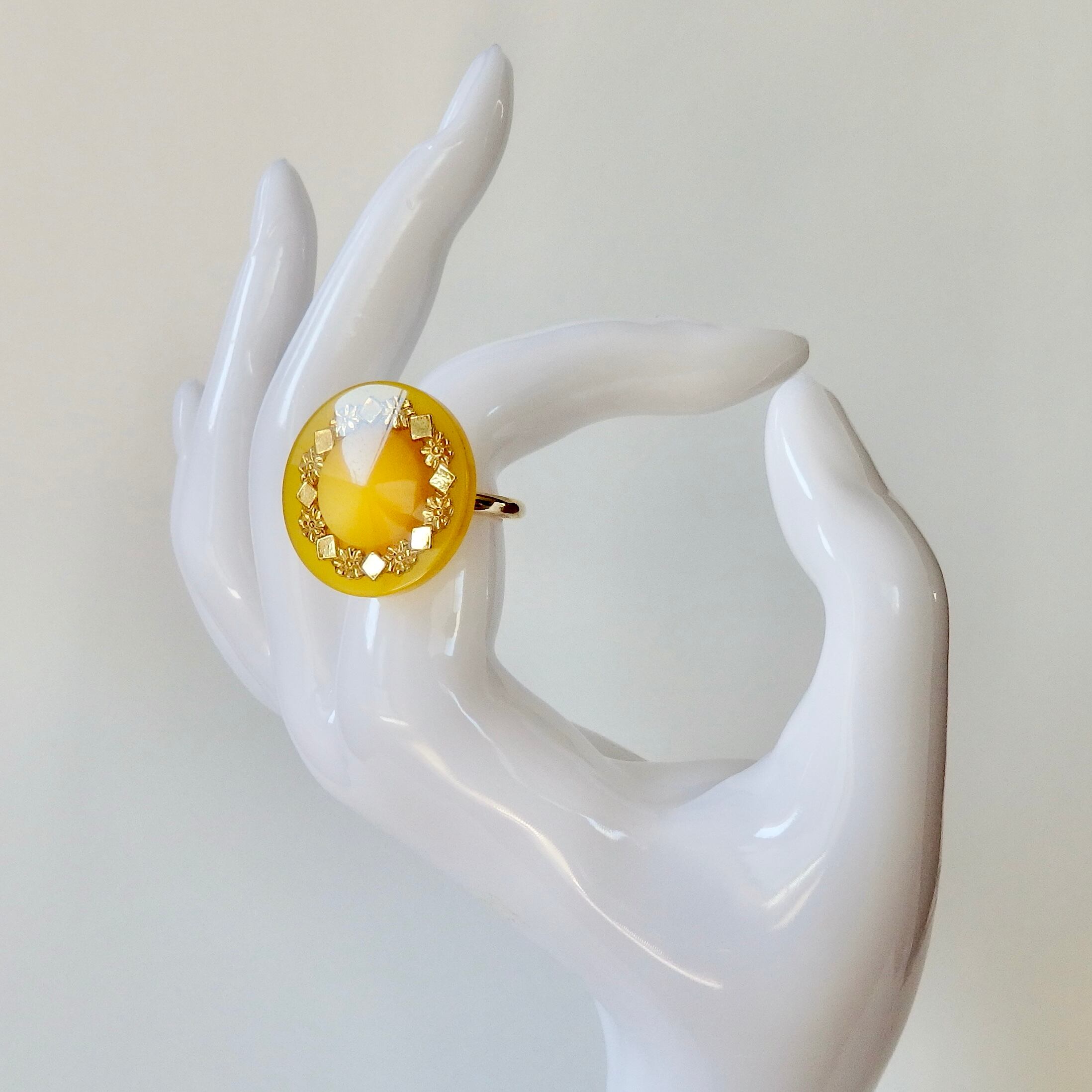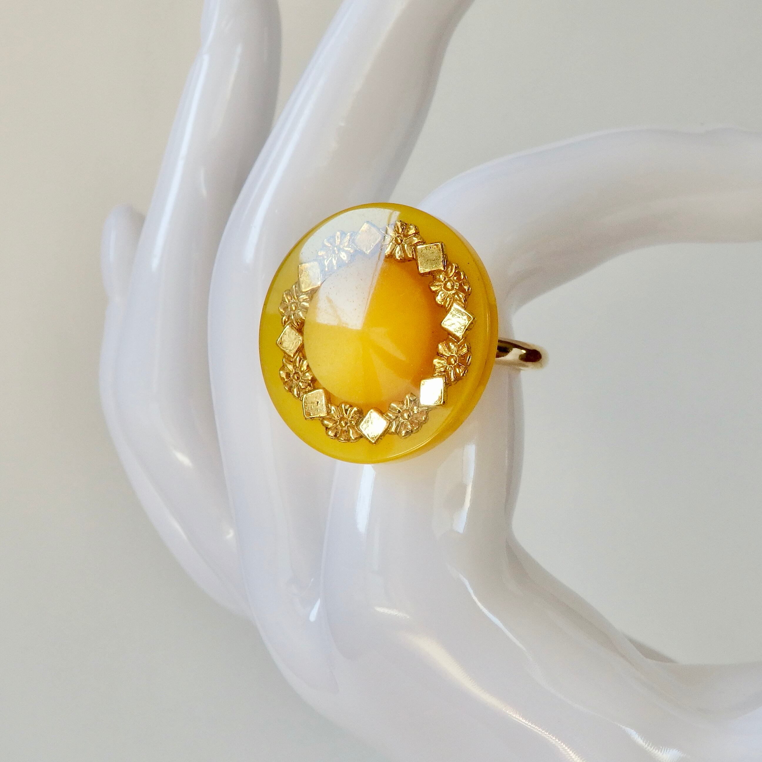 昭和時代のクラシカルな高級ボタンを使用した、ニホンネコのオリジナルの指輪です。