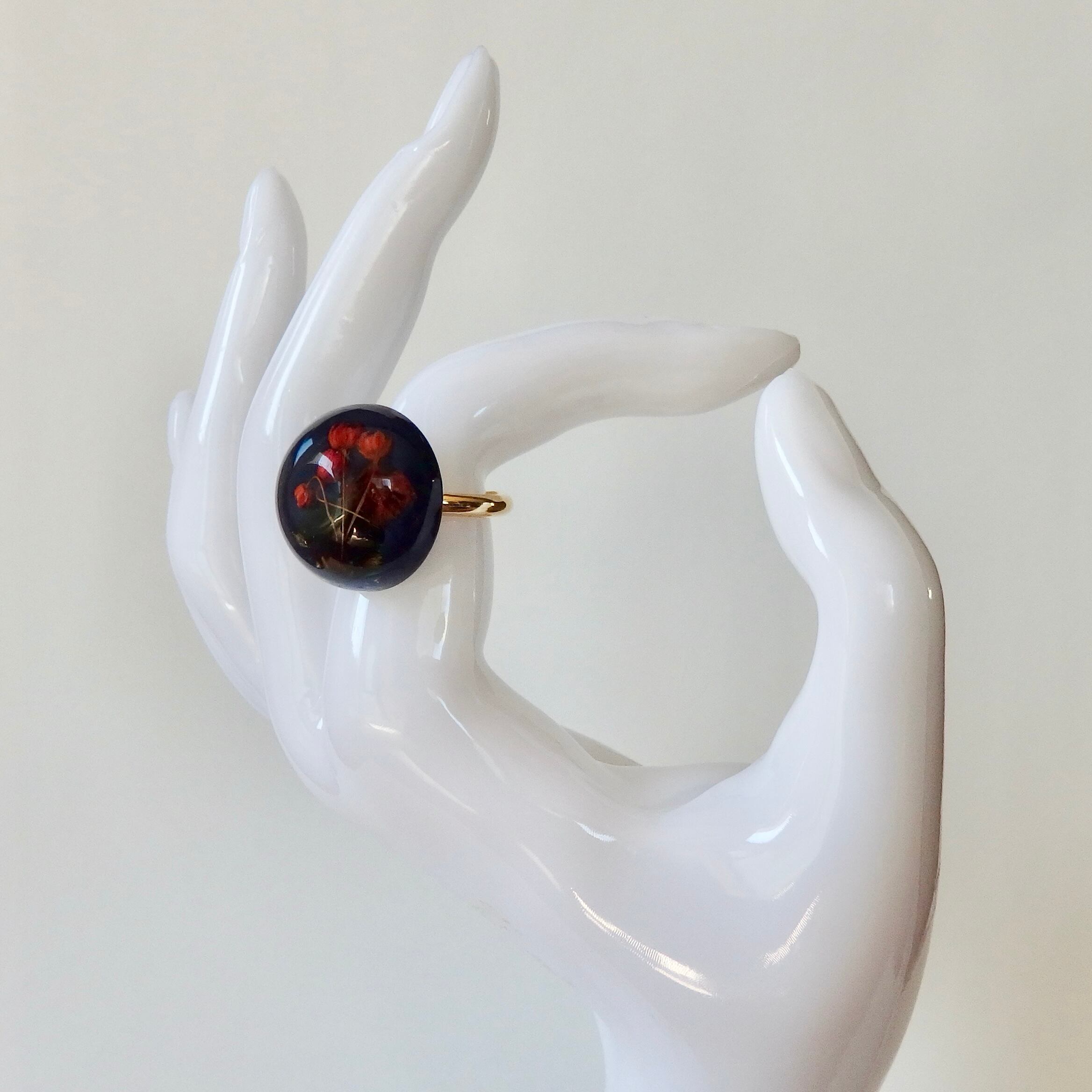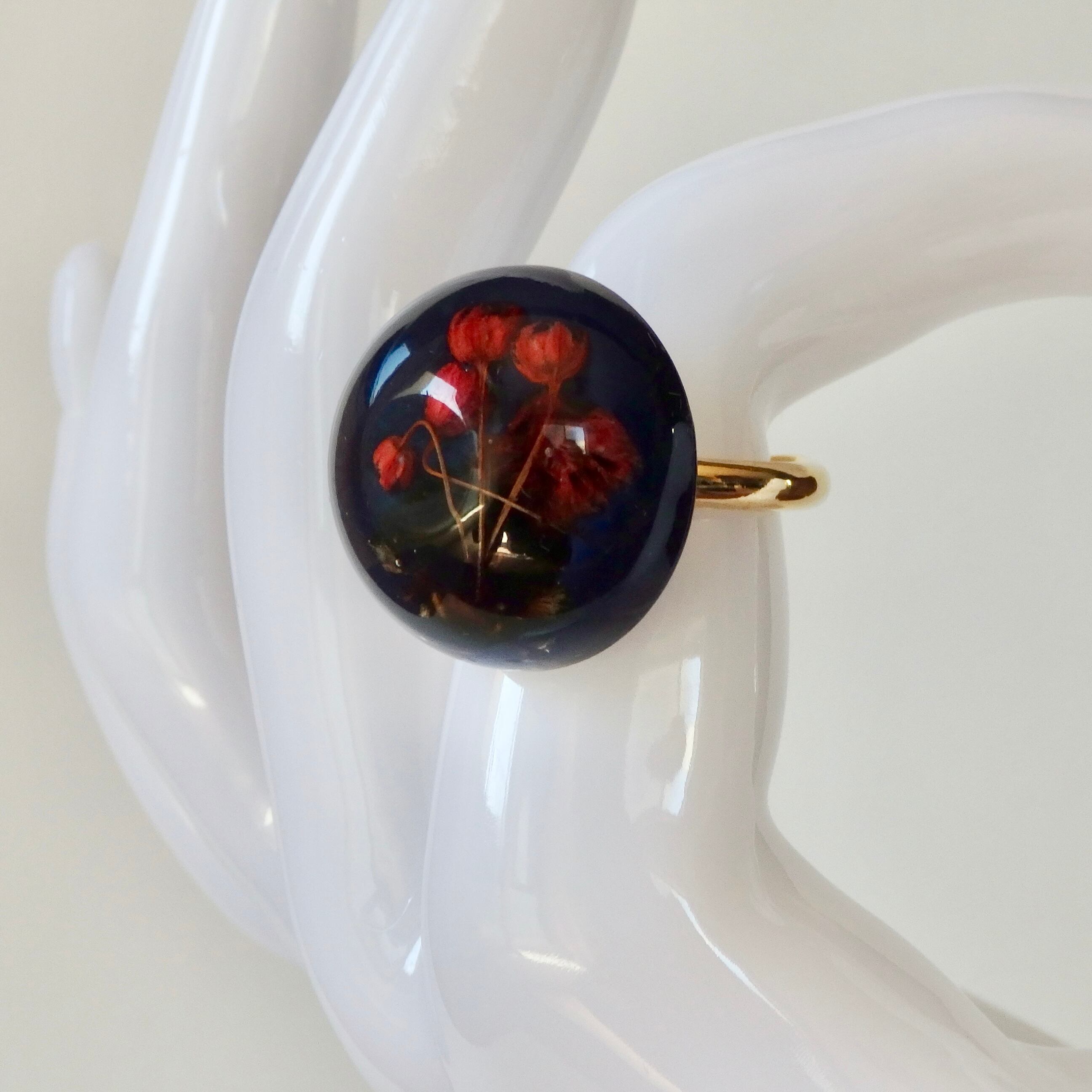昭和時代のクラシカルな高級ボタンを使用した、ニホンネコのオリジナルの指輪です。